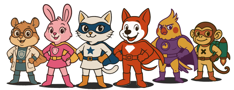 Conheça a Liga Heroes Pet: um grupo de heróis inspiradores que protege, cuida e encanta pets com coragem, magia e carinho. Cada membro tem poderes únicos para garantir saúde, bem-estar e diversão aos seus companheiros.